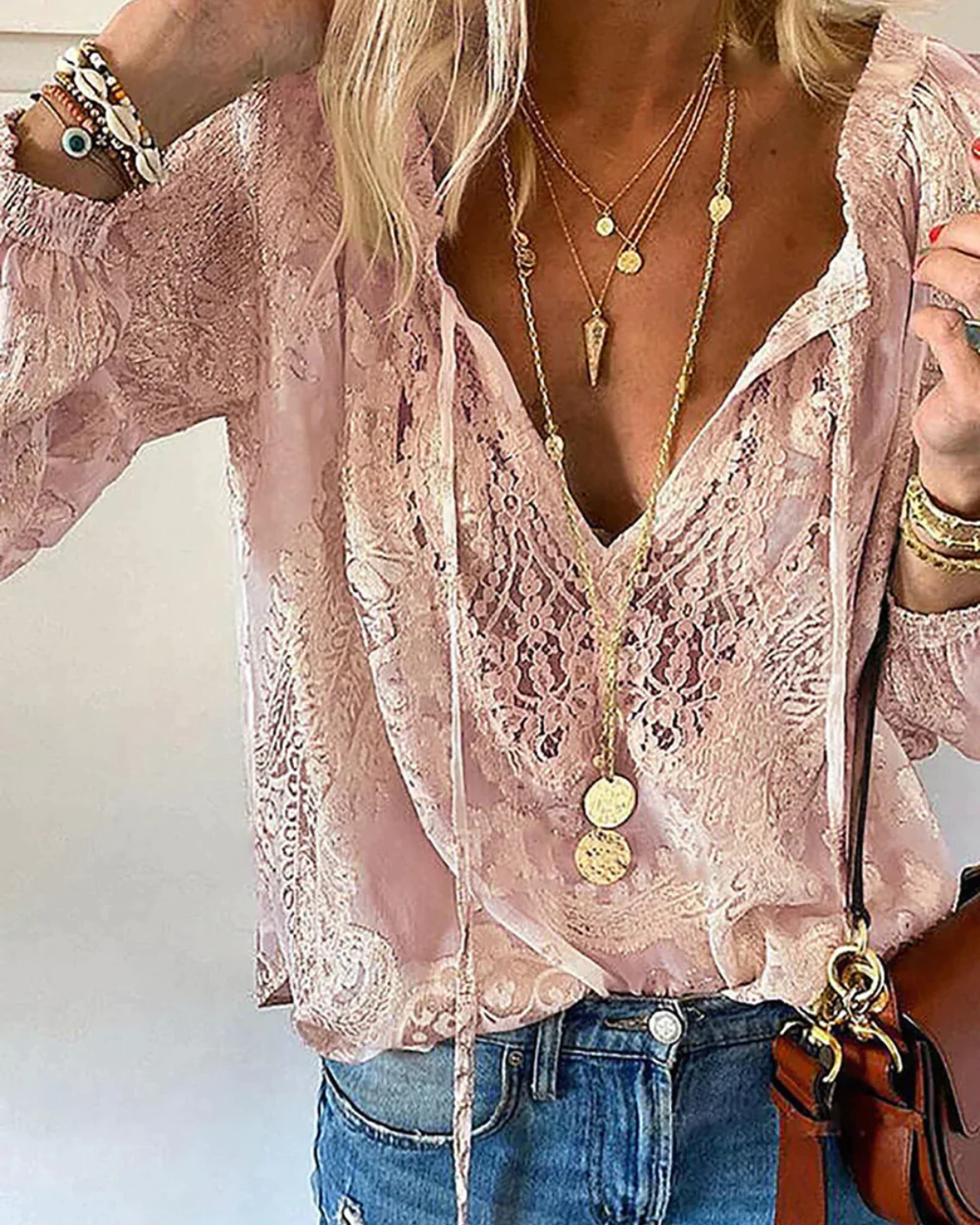 Brilaya – Boho-Spitzenbluse mit V-Ausschnitt