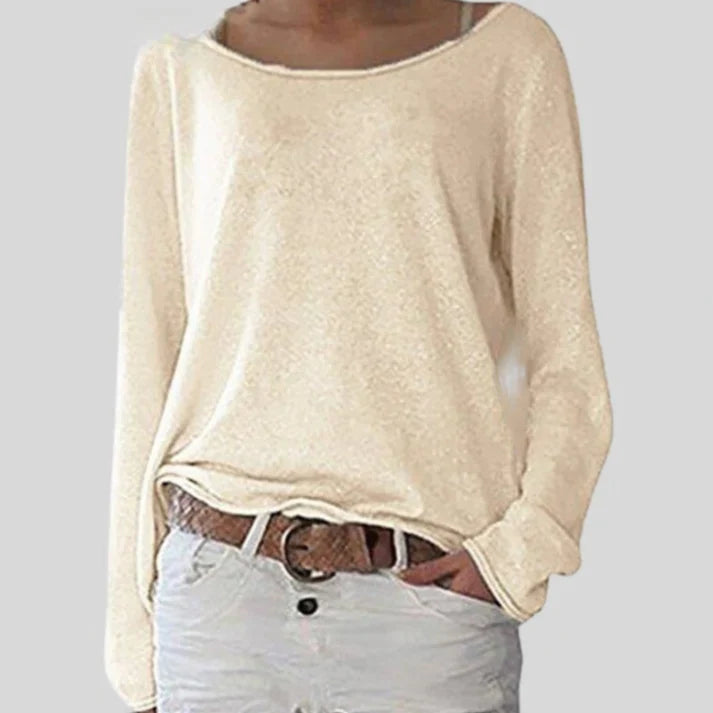 Der weite Bootsausschnitt und die langen Ärmel sorgen für einen mühelos schicken Look, der gut zu Jeans, Shorts oder über einem Tank getragen werden kann. Mit dezent gerollten Manschetten und einer legeren Passform ist dieses Kleidungsstück perfekt für das ganze Jahr und entspannte Tage.